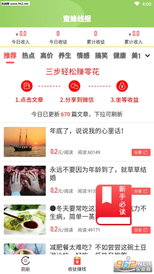 1、下载注册送1元,转发单价0.2元起,实时更新各类热点文章