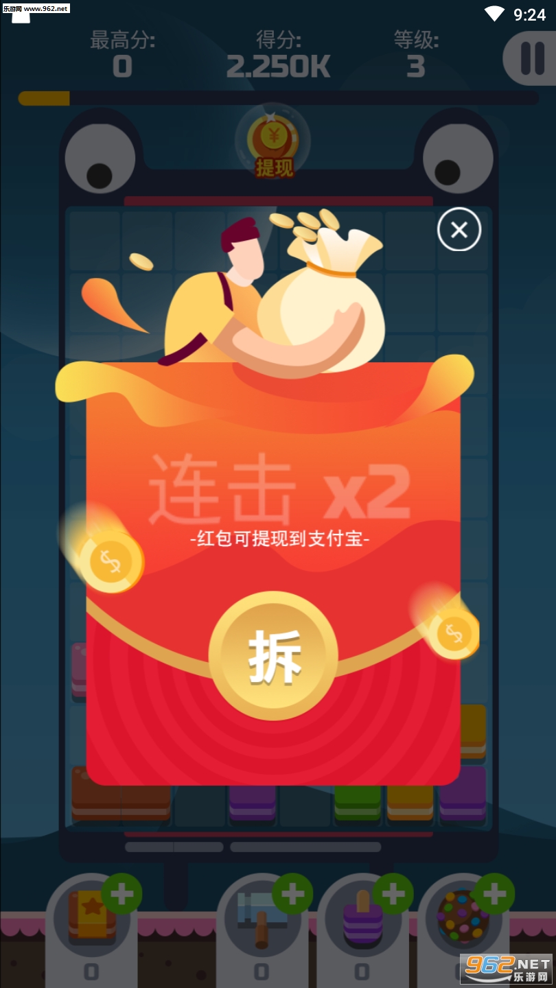 2、界面的主题有着很显眼的特点,会根据你消除的数量和所得积分来自动进行更换;