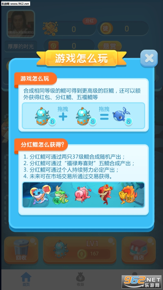 《养鲲大亨红包版》是一款非常给力的手机养鲲赚钱平台,简单的赚钱模式,用户通过养鲲来获得收益,合成鲲的等级越高奖励越多,操作非常轻松,是你打发无聊时间的首选,感兴趣快来下载吧!