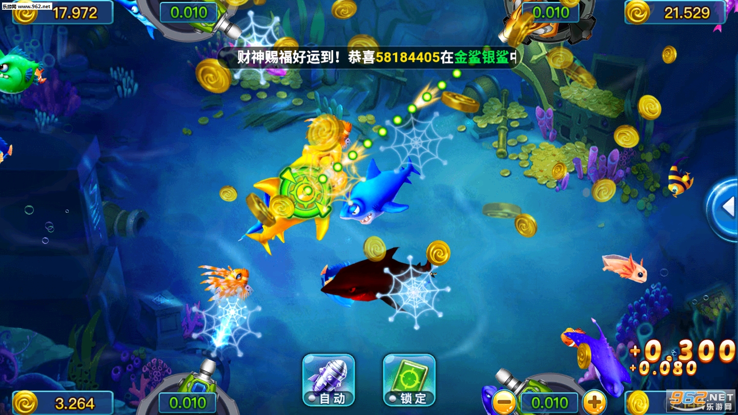 2、全区boss震撼来袭,钢铁帝王蟹坐等你来战,更有性格迥异的特殊鱼、缤纷小游戏,花式捕鱼停不下来!