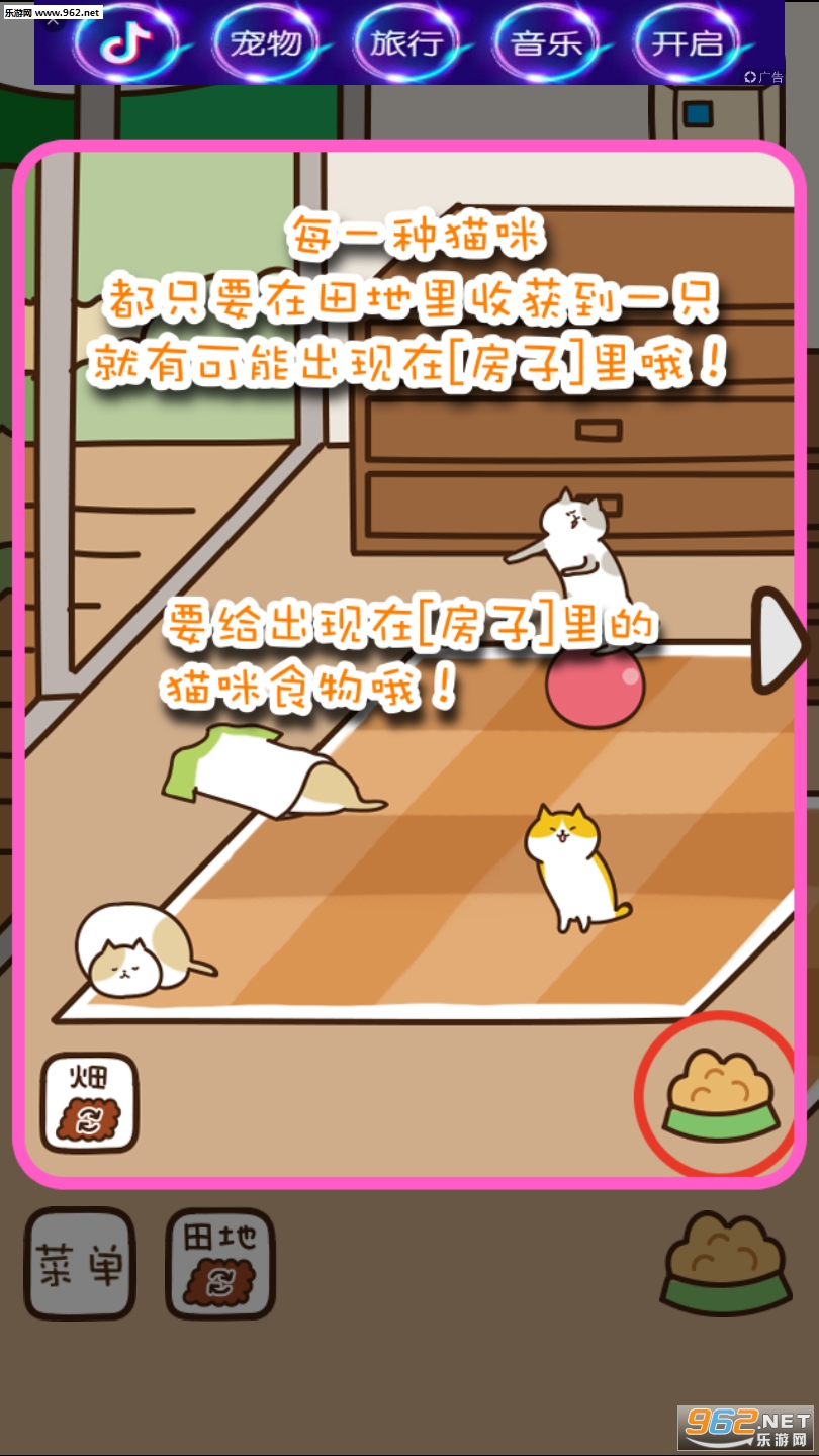 1、只要种下猫咪种子,浇水之后,就能长出可爱的猫咪,但是忘记浇水的话,土地会干涸,就长不出猫咪了哦!喂养收获的猫咪,还可以生出可爱的小猫咪哦,来组建猫咪大家族吧!