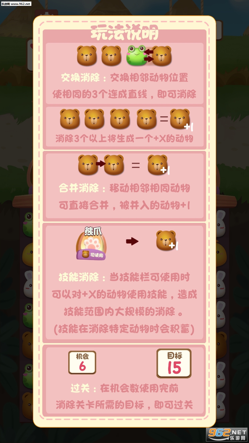 《萌宠大逃难红包版》是一款轻松经典的消除玩法小游戏,游戏中采用经典的三消玩法让每一位玩家都能轻松的上手体验,游戏玩家每进行一次消除小动物们都会向前方跑动一小段,通过重点即可获胜,来看看自己的消除能力可以帮助小动物们跑多远吧。