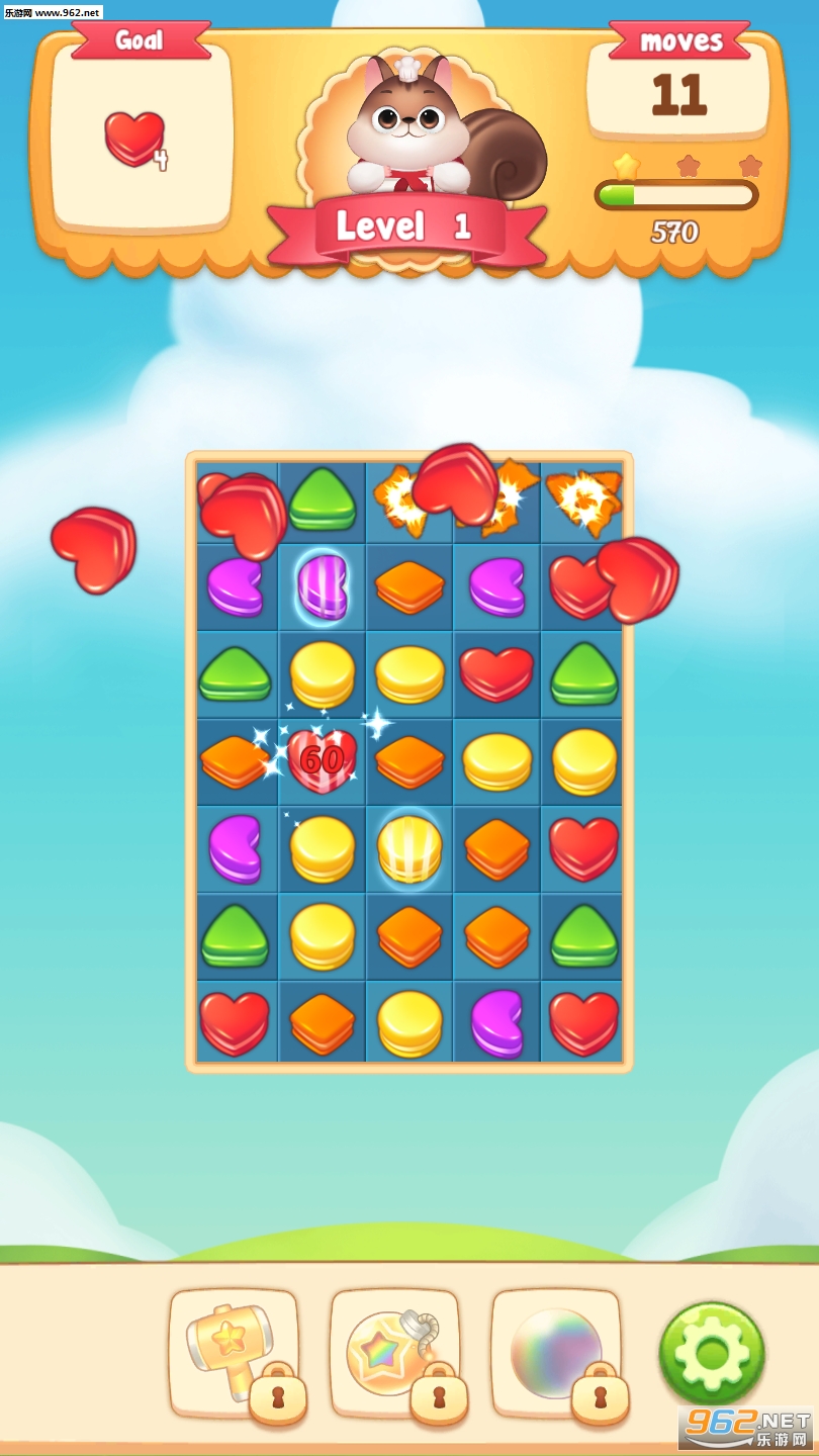 2、如果能消去四个以上的甜饼,还会有特别甜饼登场,加上各式各样的道具。