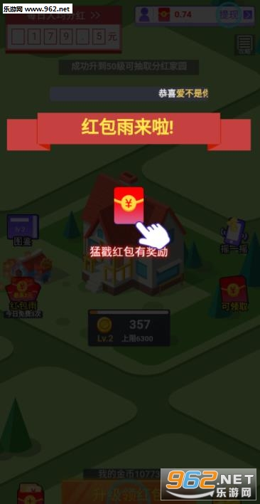 完美家园红包版是一款玩游戏就可以领红包的小游戏,游戏通过消耗等额的金币即可将建筑物进行升级,建筑物等级越高则获取的金币越多,建筑满级50级满级后还会获取额外的红包奖励