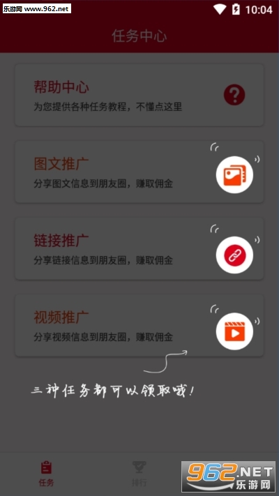 《赚得快任务推广赚钱软件》是一款做任务赚钱的软件,零风险门槛低,只要有手机就可以做任务发朋友圈赚钱,获得点击就可以返佣金,图文教程,让每个人都能够快速受伤,喜欢的来下载吧。