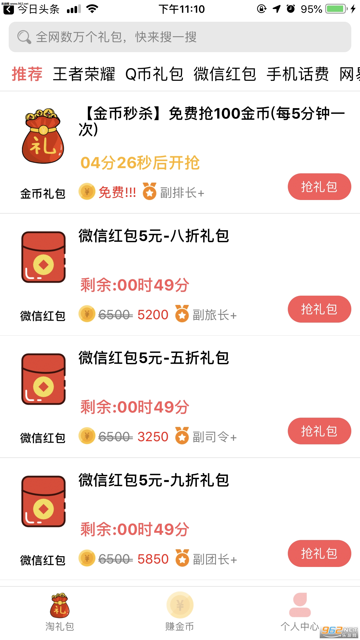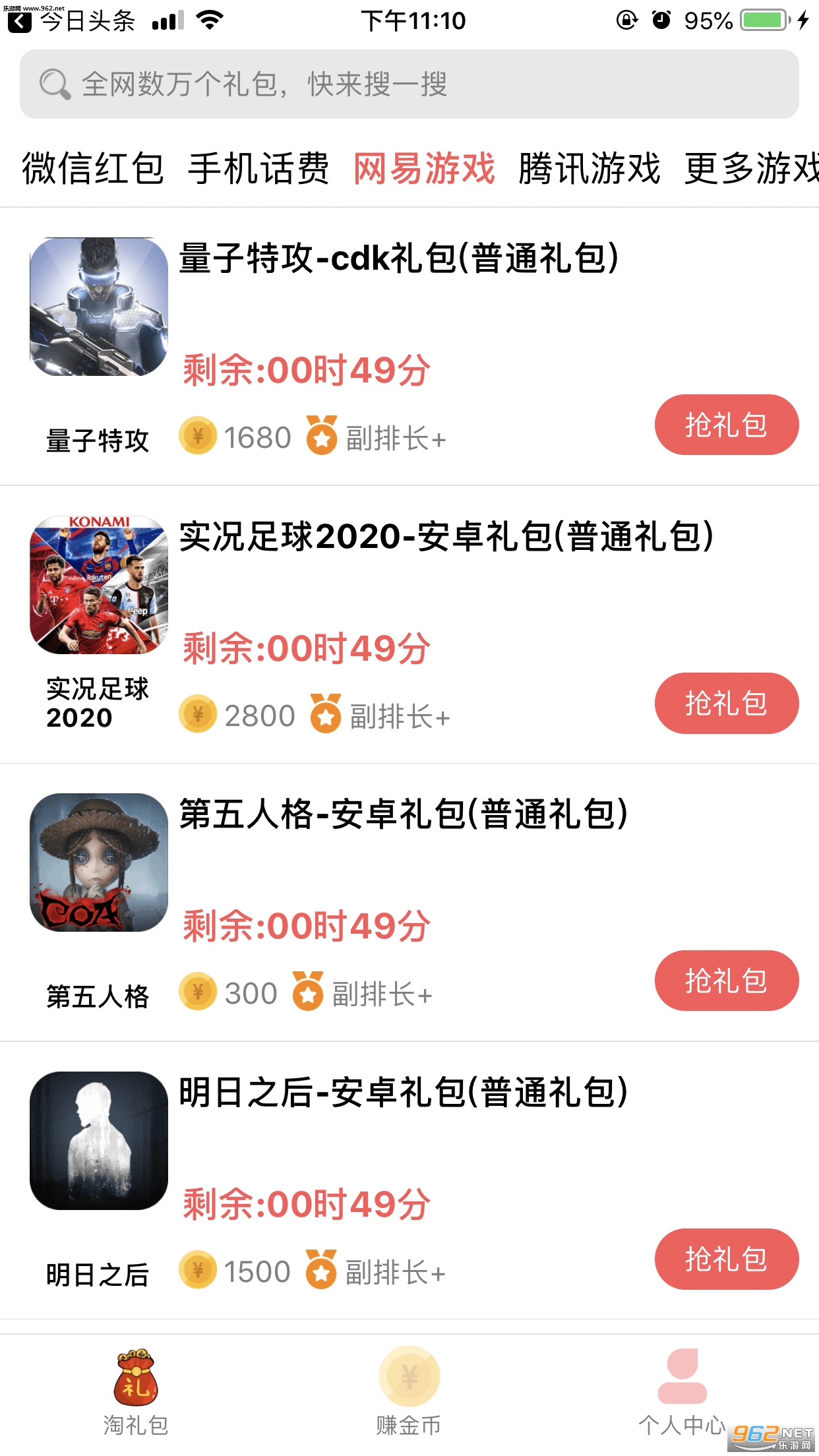 提供免费的各种礼包,包括游戏礼包,Q币礼包,现金礼包等。