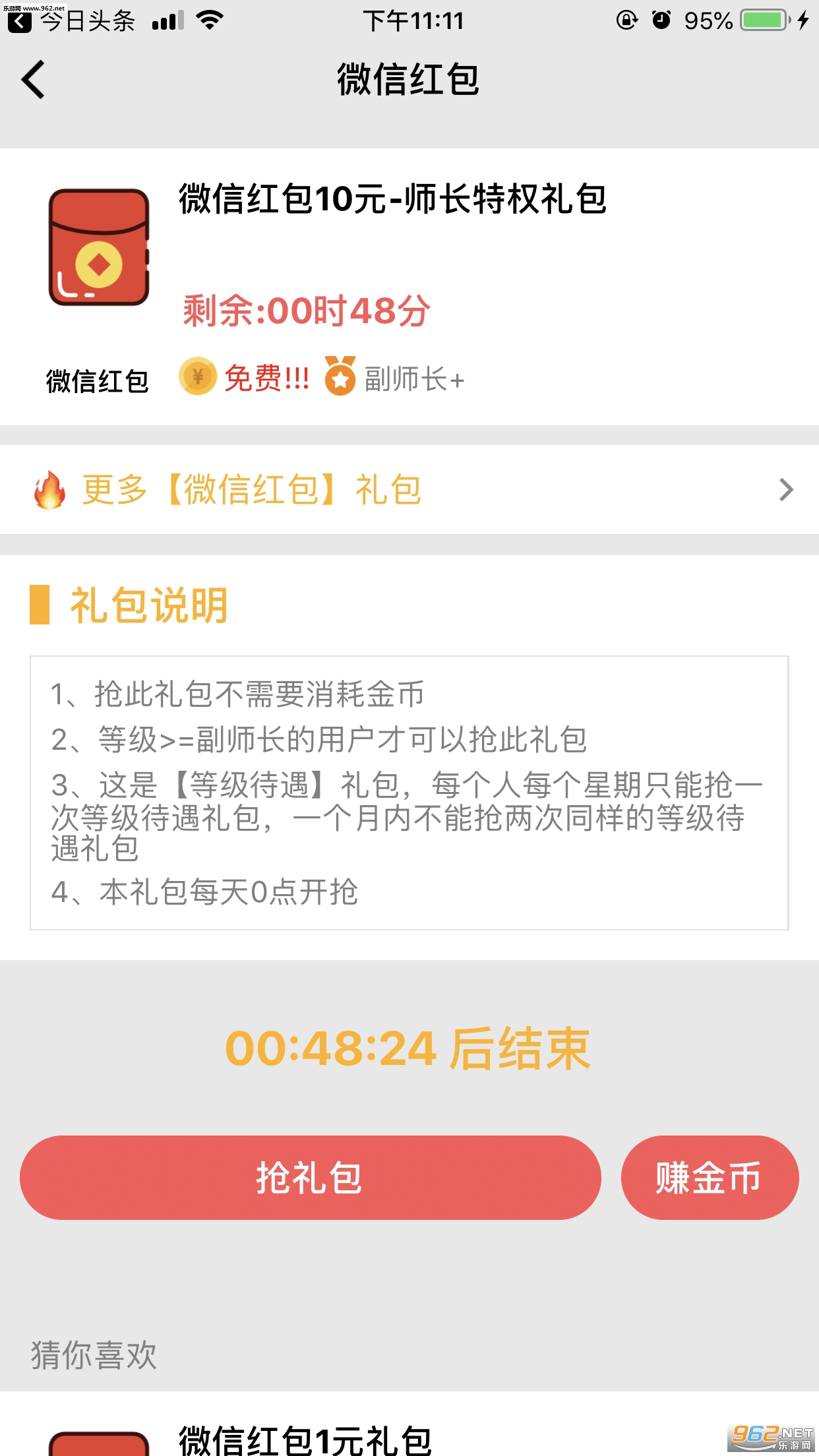通过看广告、分享好友等任务,可获得金币奖励。然后通过使用金币即可抢礼包。