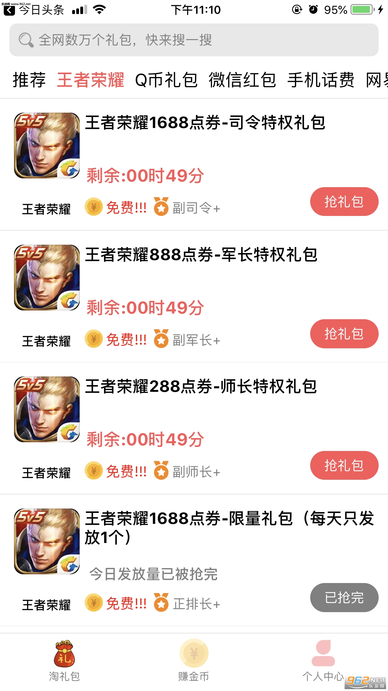 3.各类热门的游戏礼包这里都覆盖了,王者荣耀、qq飞车、跑跑卡丁车以及王牌战士等都有。
