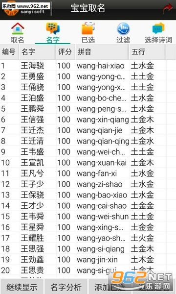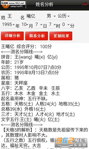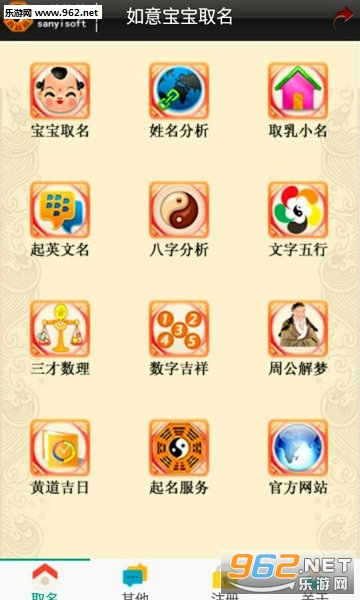 软件另外还包括诗词起名,起小名,英文名参考,八字分析,姓名分析,起名方法知识参考。