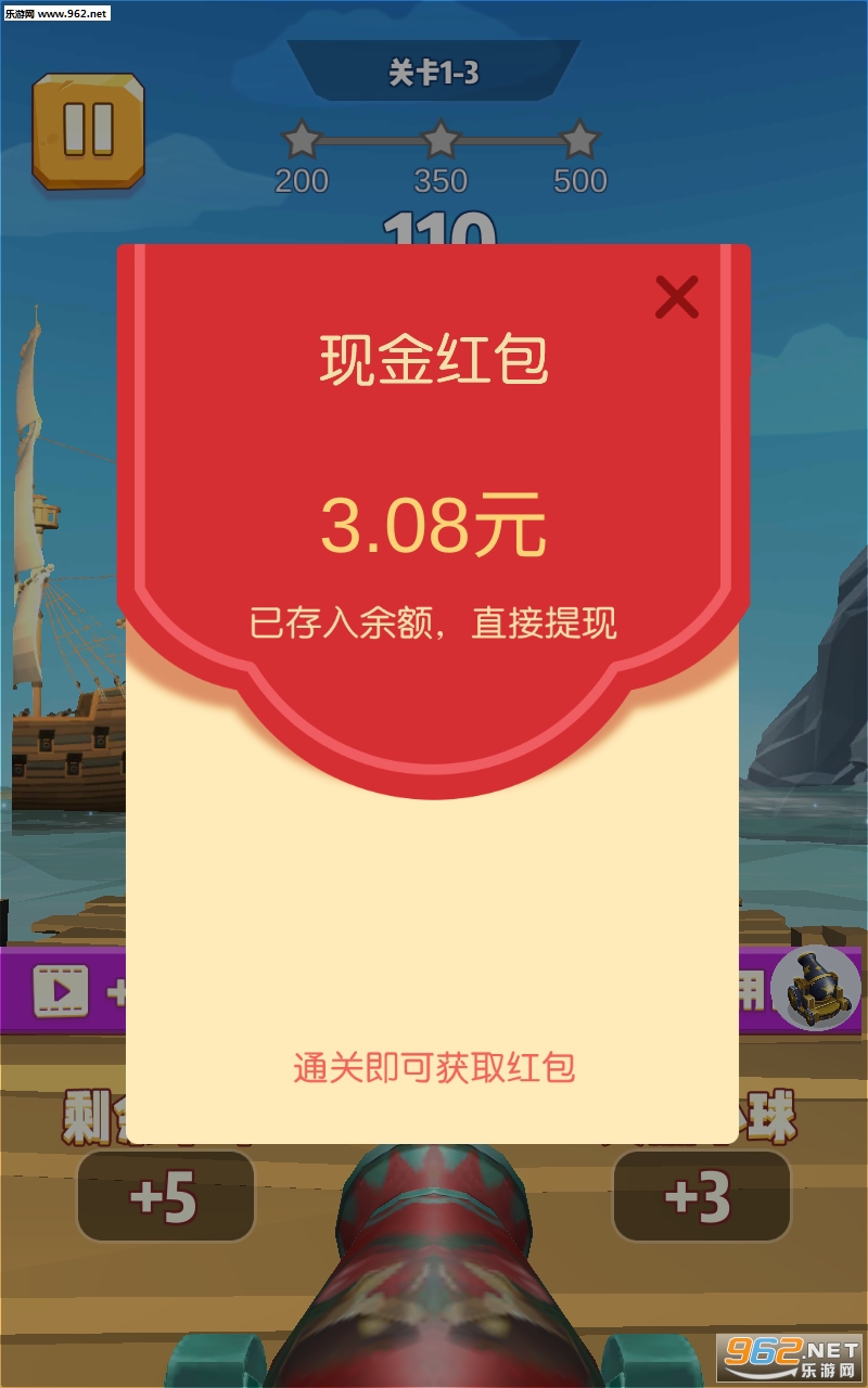 开心炮手赚钱版是一款射击闯关类游戏,在游戏内玩家将扮演一名神炮手,玩家需要将关卡内的障碍物清理干净,玩家使用的炮弹越少清除的越快,获得的分数就越多,这十分考验玩家的操作以及预判。