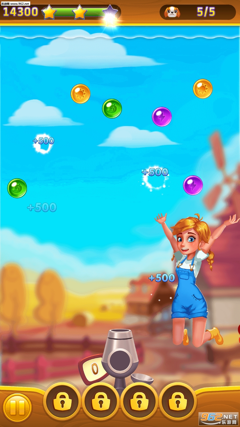 1、经典的泡泡龙玩法,开心消除根不停不下来,充满趣味;
