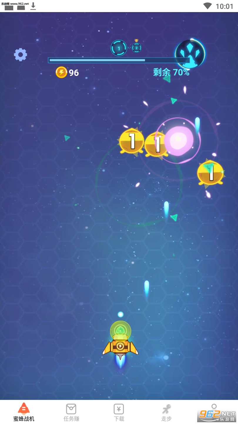 《蜜蜂战机手游红包版》是一款轻松赚钱的小游戏,游戏中玩家每次通关都会得到金币的奖励以及积分,金币可以用来升级战机更好的获取积分,积分则可以用来进行奖品的兑换,也能直接按照比例提现。平台除了这款打飞机游戏之外黑有很多可以赚钱的小任务,玩家只需要按照要求完成即可获取奖励啦,让自己在休闲时间打打飞机赚钱,真是件愉快开心的事情。