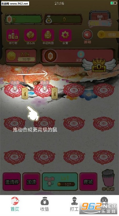 《分红鼠赚钱app》是2026年金鼠年给大家带来的一款手赚软件,通过养金鼠合成分红鼠就能轻松赚钱,让大家一起来这里可以体验到快捷的赚钱服务,让各位用户们一起来这里体验到赚钱的乐趣!赶紧来合成你的分红鼠吧!