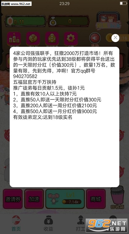 升到2级,再点一下,一般就送一个红包,逍遥搞了8.01,好像挺高的,是我玩合成类项目中最高的了,不知道大家会不会比我还要高!