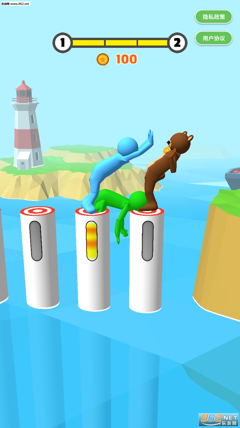 3、千万别倒,无论你用什么方式,将对手推下水的同时保持自己的稳定性。