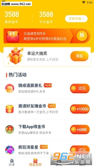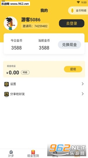 记录走路数据,每天都可以将步数转换为金币兑换收益,立即提现