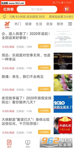 红转客app是一款优秀的手机赚钱应用,闲暇时只要打开红转客app,动动手指,看些资讯并转发出去,就能为您赚到一些额外的收入。推荐朋友一起使用红转客app,除了让你的朋友赚钱,同时还可以一起玩喜欢的应用,让我们一起开启赚钱之旅吧!