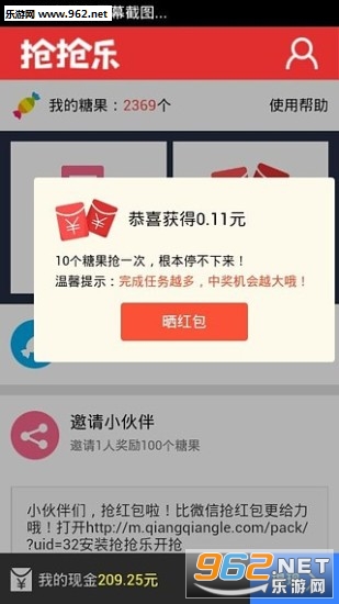 《红包抢抢乐app》这是一款全新上线的网赚平台,用户们将通过抢红包来赚钱,每天该平台都会发出大量的现金红包给用户们抢,打开手机动动手指就能赚钱大量的零花钱,何乐而不为呢!