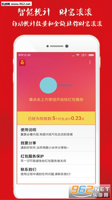 1.全球最快的一款自动抢红包软件,简单、安全、快捷。让你的手机不漏过任何一个红包!