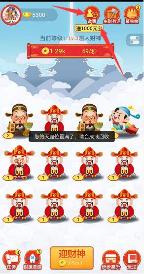 开启更加好玩趣味的合成游戏,让你的财神爷变的更高级,这样给用户们带来的红包奖励也就更多喔!
