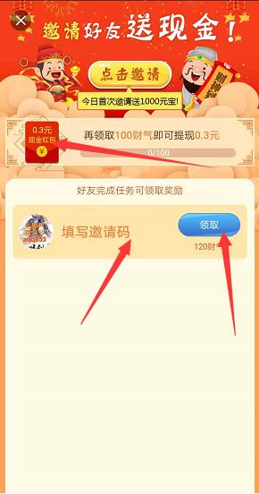 点击合成页上面邀请,有邀请码直接点击领取,没有邀请码填写:14166926,填写后领取,然后点击0.3元直接提现秒到账