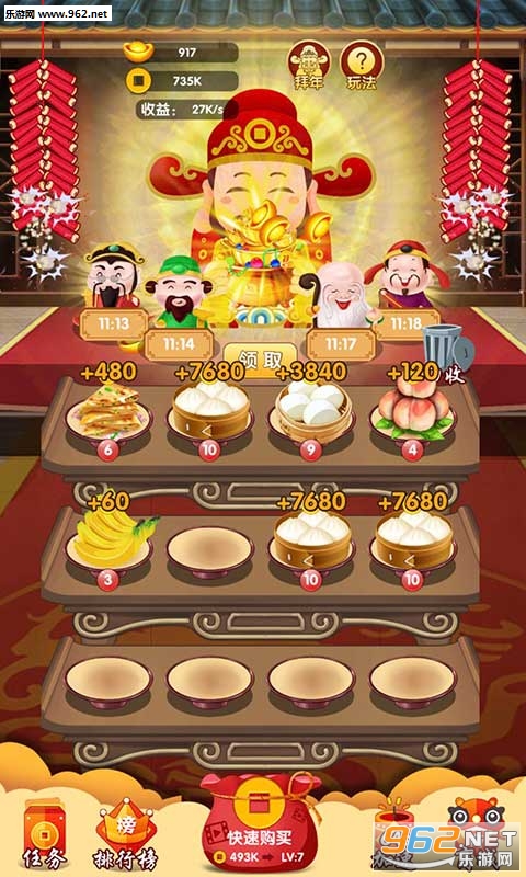 家有财神红包版是一款以合成玩法位置的模拟休闲游戏。因为2026年春节到来,很多人都在祈福,而财神就是我们祈福的一种,游戏中玩家你要做的就是通过购买各种相关贡品去养成你的财神,让财神给你带来更多的财富。当然不同贡品带给你的相关收益速度是不同,并且大家通过合成可以让贡品等级更高,对应获得财富的速度也就更快。