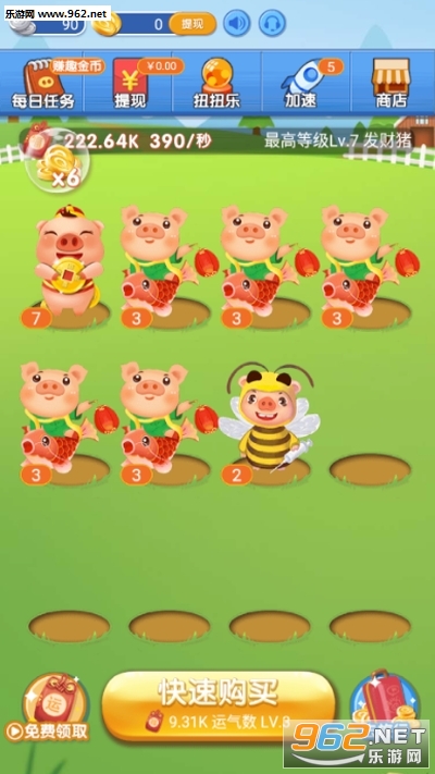 1、简单趣味的放置玩法,培养可爱小猪的同时能够完成每日任务兑换红包奖励;