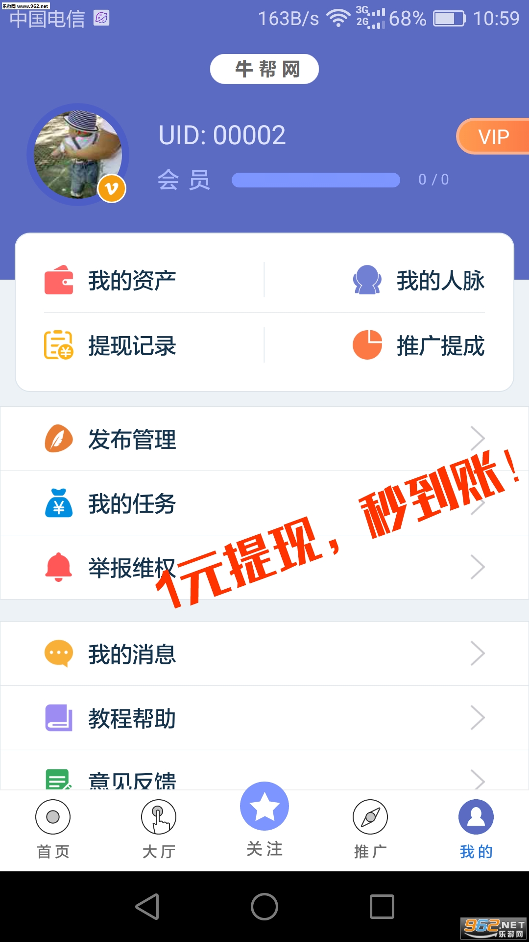 大家在牛帮中能通过任务赚钱,同事还能收徒,让你的收益翻翻,是一款超级经典的线上赚钱服务平台!