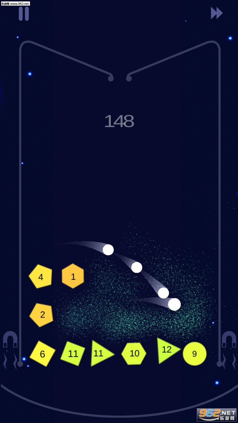 3、你可以多多利用小球的反弹功能,这里弹到那里,都是分数哦!