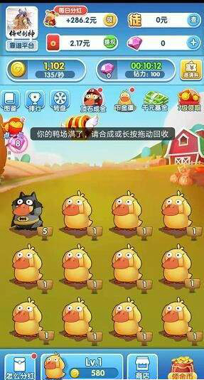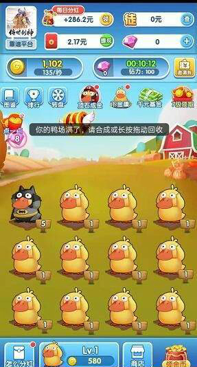1、只有一个界面就是你的鸭厂,上面有很多的鸭子需要你去喂养,还要让它们自己出去觅食。