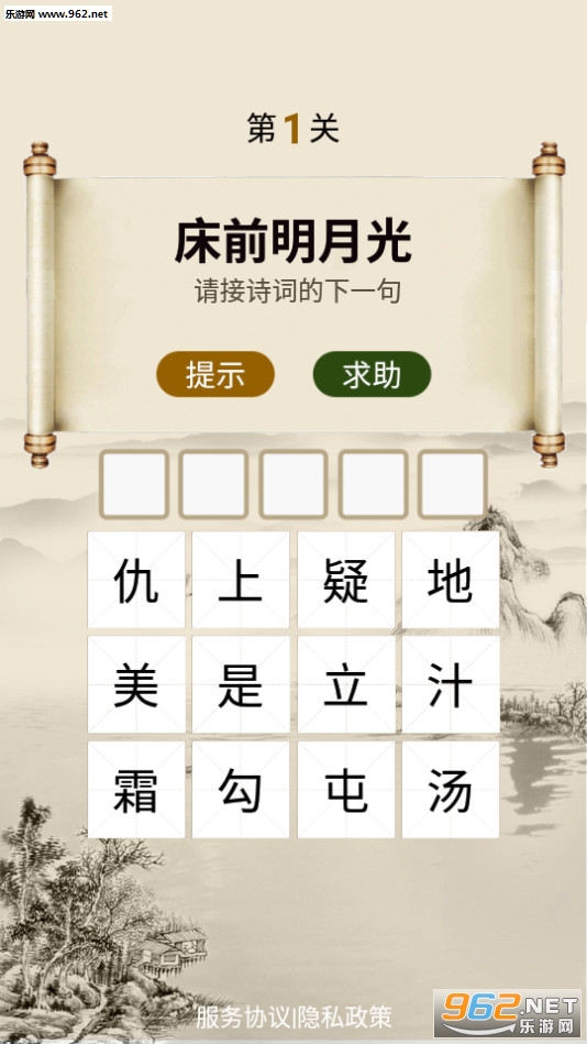 2、在进行答题闯关的时候,平台会给出诗词上句,然后显示12个字,让你组成诗词的下半句。
