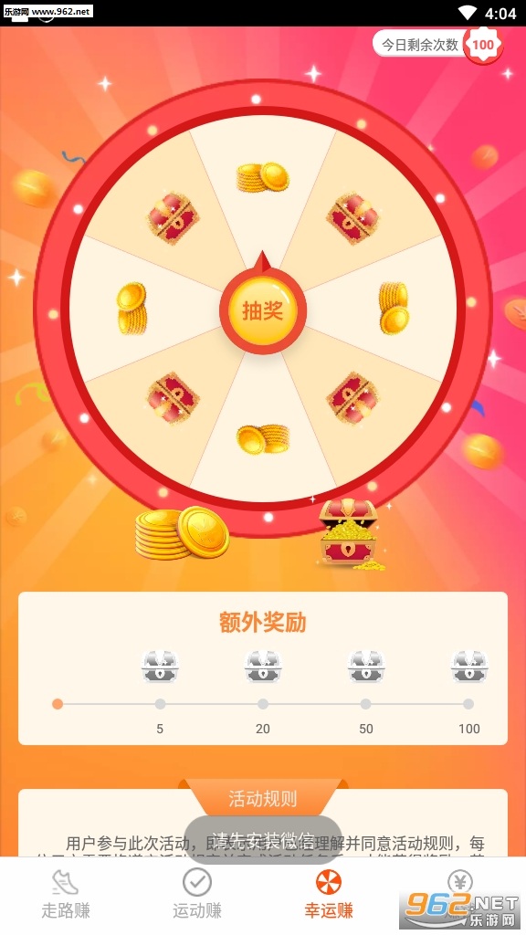 一款完美的走路赚钱平台,这里赚钱容易,提现也非常容易,每天的运动过程中,每天都可以收获健康和红包,一举两得还不好吗?欢迎广大用户来962下载体验一番吧!