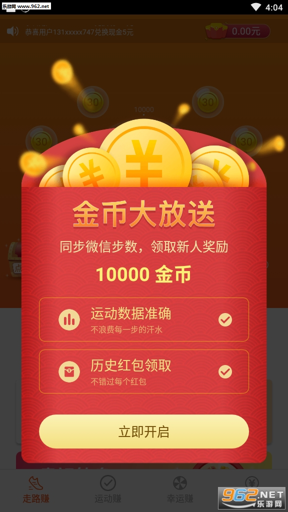 下载即可领乐币,累积乐币秒提现变现金,一边运动一边赚 钱就是这么有趣,运动更加有动力