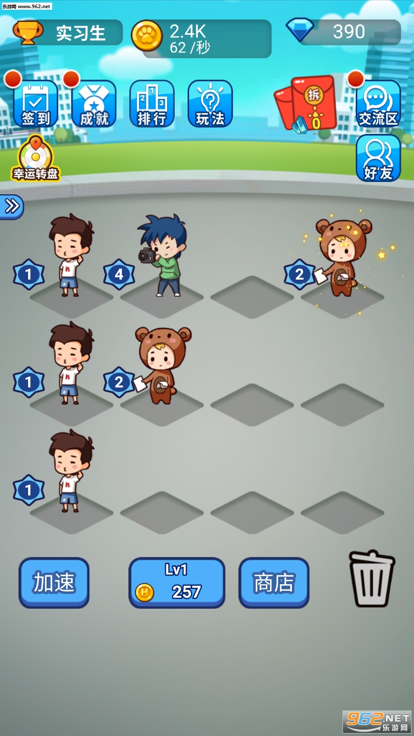 2、通过合成的方式可以升级,逐渐的积累财富,获取更多的经验;