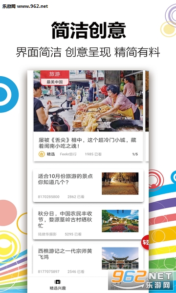 极简的界面设计,精简有料看看,杂志精美排版,海报新闻图片分享。
