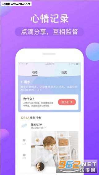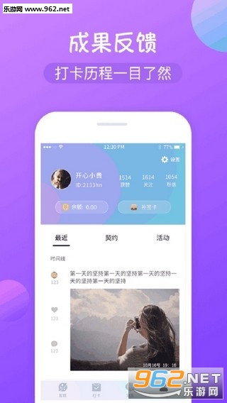 利用图文形式进行打卡,还能记录自己的心情发布到打卡圈。用日历的形式展示打卡记录,已打卡、漏打卡都一目了然。