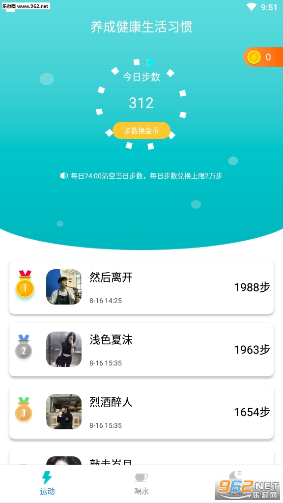 一款集合多种赚钱模式与一身的app,你可以通过步数来兑换金币,也可以通过喝水,睡觉的规律生活来获得奖励,感兴趣快来试试吧!