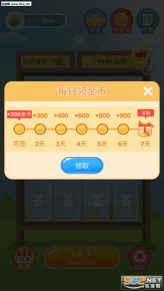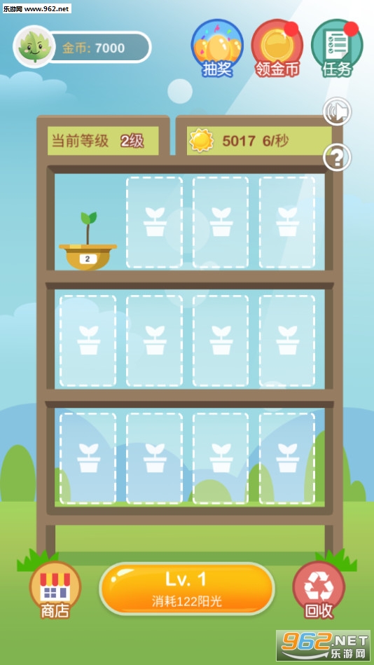 3、通过每天将你的花盆放置到架子上,并让它们沐浴在阳光之下,获得光合作用,并不断的产生金币收集起来。