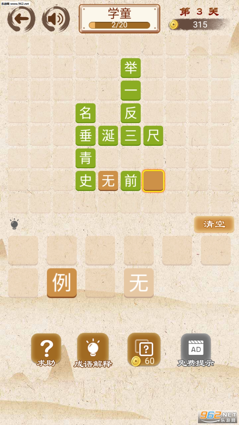 3、相信很多成语都是大家没有见到过的,游戏中每个关卡都会有三次提示的机会。