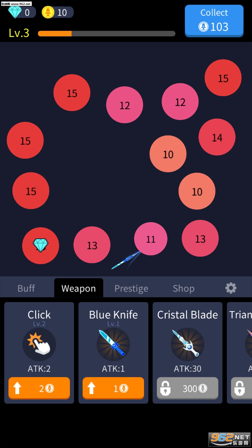 《放置之刃红包版》是一款非常爽快刺激的放置类消除手游,游戏中将会有很多的红点需要玩家进行消除,玩家可以直接丢出飞刀来将屏幕上的红点进行消除,飞刀的等级越高威力越大过关越轻松,也代表着玩家越容易拿到现金红包大奖,让自己爽快扔飞刀的同时也愉快领红包吧。
