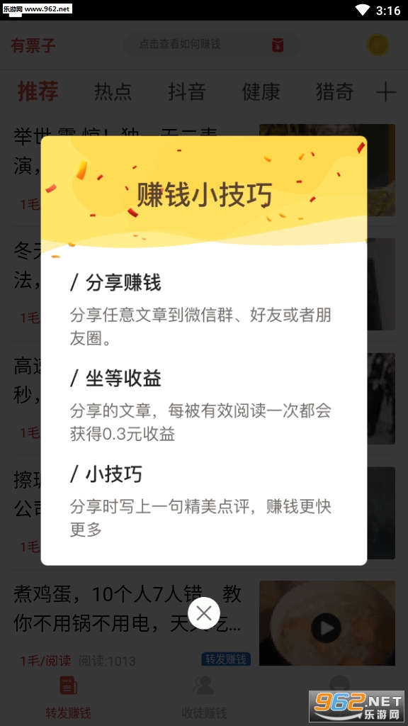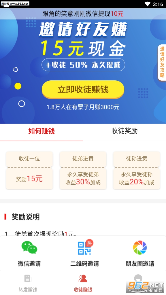 一款超级轻松的手机阅读赚钱app,多种阅读赚钱任务你可以完成,也可以通过收徒邀请好友的方式来获得更多福利,喜欢就来962下载吧!