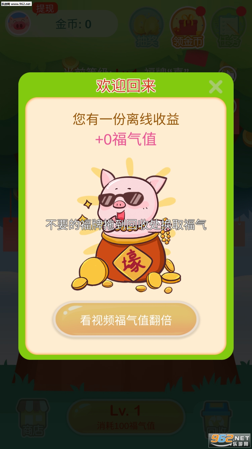大量的福牌的等待着玩家的到来,玩家需要收集各种不同的福牌来增加自己的收入,在玩游戏的途中还能赚钱,轻松休闲外加赚钱,舒爽又愉快。