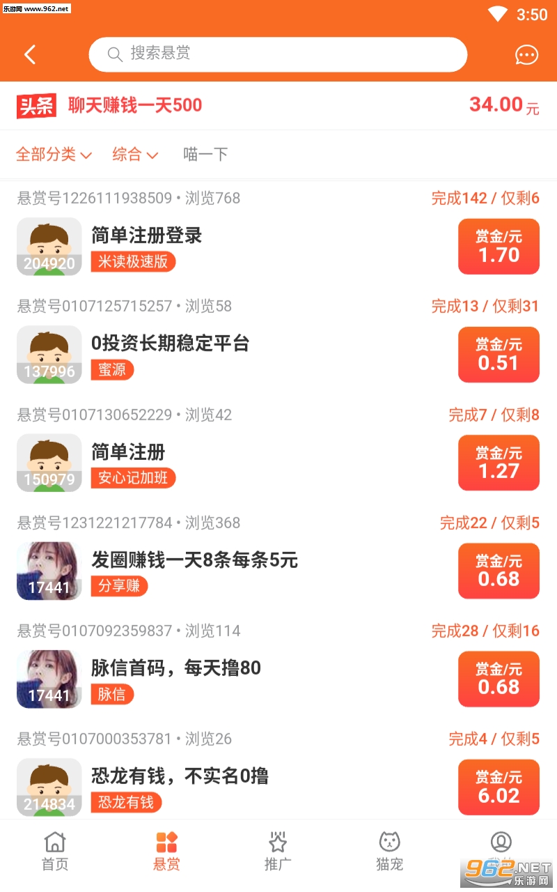 然猫任务app,是然猫网旗下推出的一款悬赏任务众包平台。玩家通过做任务、推荐好友获取猫宠奖励,拥有猫宠可获得平台利润分成,收益提现秒到账!