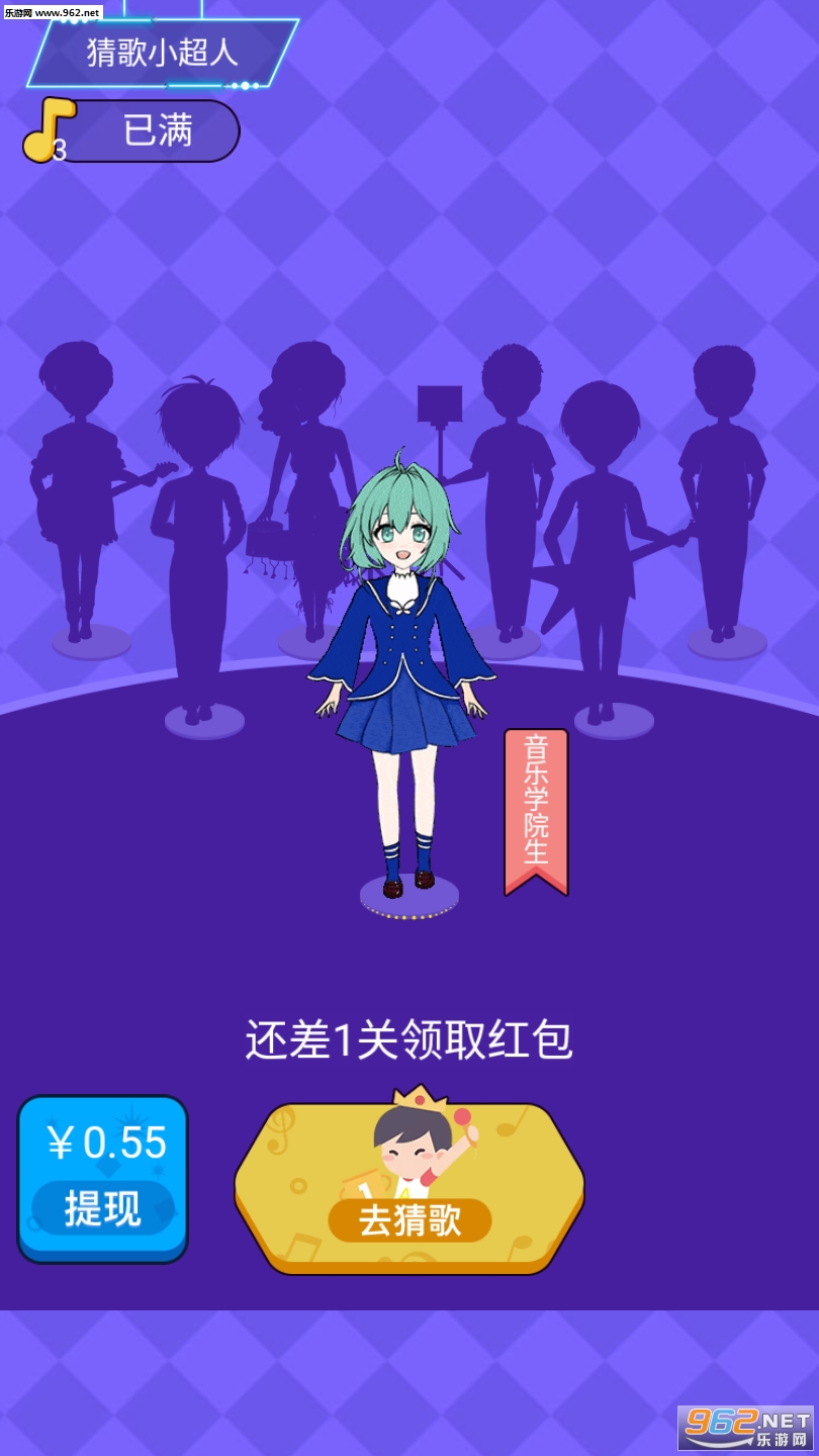 《猜歌小超人赚钱版》是一款为喜爱听歌的玩家带来听歌赚钱的游戏平台,这里让玩家可以听到各种各样的音乐,通过猜歌名,可以获得各种奖励,在玩游戏闯关的同时可以获得红包的奖励,赶快来962下载挑战吧。