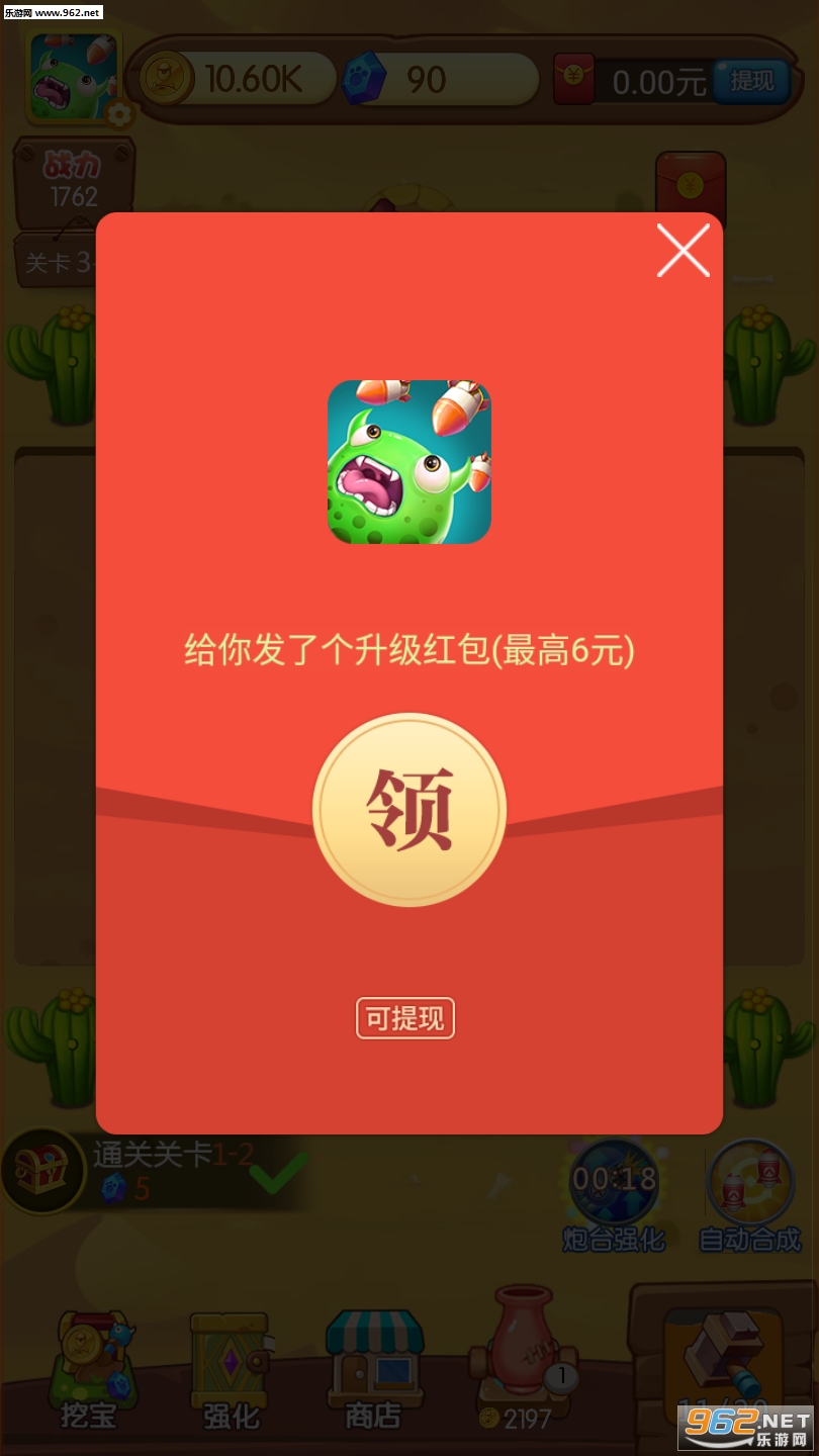 《炮与兽红包版》是一款轻松休闲搞怪类的塔防游戏,游戏将塔防,放置,合成三项融为一体,让游戏的玩法趣味变得多种多样,玩家所面临的挑战也会越来越多,无论是炮台的搭配还是合成方式的选择都是一种博弈。不过游戏也为玩家准备了丰厚的福利,每击杀一次boss就能获得红包奖励,满一定金额就可以提现了,还在等什么,来休闲玩游戏的同时领红包吧。