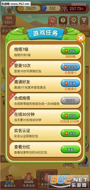 1、下载注册完成任务领红包,首次0.3元提现秒到账,每升2级就能领一个红包
