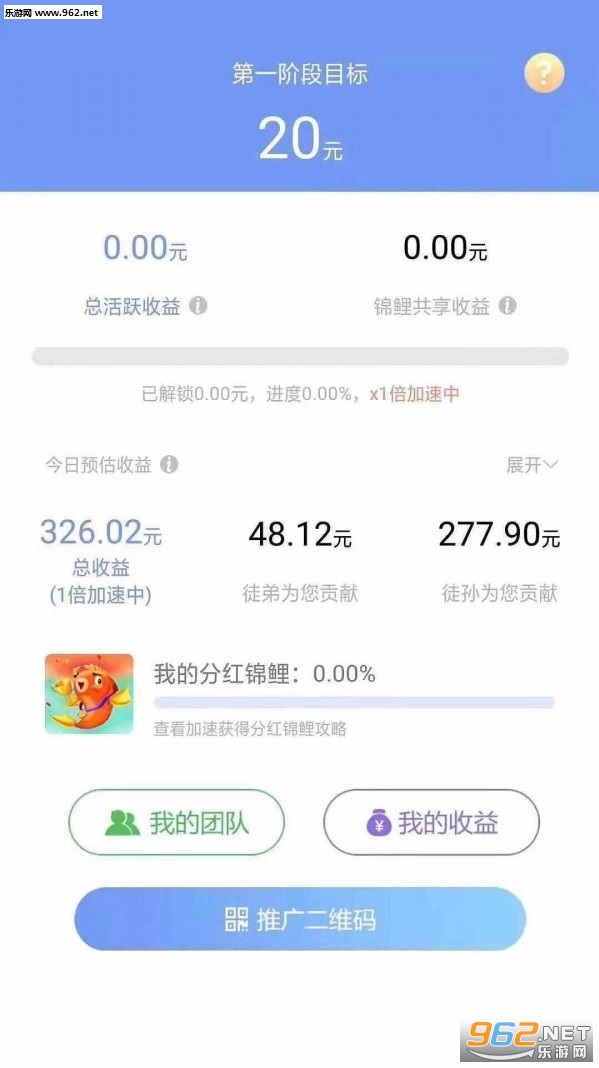 除了自己升级锦鲤赚钱之外,最赚钱的还是靠推广拿徒弟和徒孙两级活跃提成。通过邀请链接邀请好友加入成为你的徒弟,徒弟在线升级、挂机、看广告,师傅都可以获得相应的活跃收益。