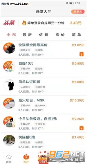 赏乐帮是一款手机赚钱应用,赏乐帮app是一款做任务赚佣金的客户端应用,赏乐帮软件每天都有大量任务更新,不需要任何投入有手机就能操作赚钱,赏乐帮app让你赚钱赚到手软。