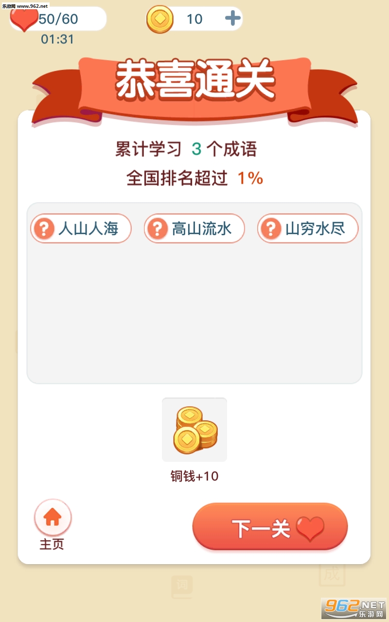 1、一款老少皆宜的休闲闯关游戏,游戏中让玩家们在中华成语世界中玩耍;