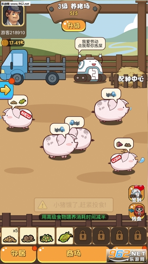 3、猪的成长分为好几个阶段,你需要不断的投喂食物,不能让它们饥饿。